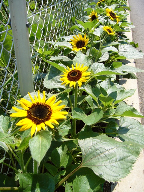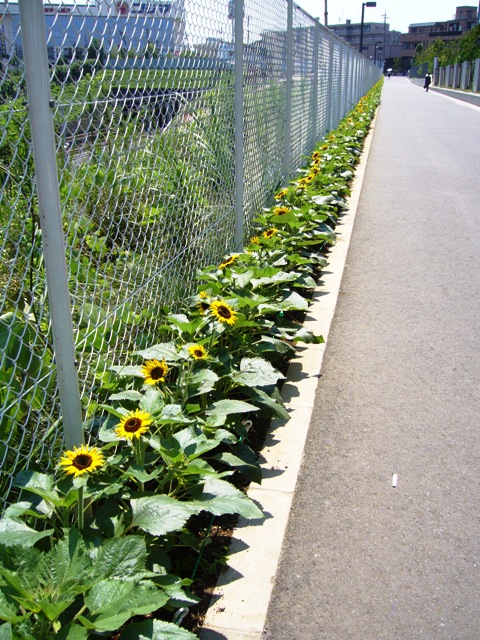 すっかり梅雨真っ只中の毎日。 暑い日ざしが懐かしくなってきました。 春にはチューリップで通る人たちの目を楽しませていた、 こちらの花壇。 いつの間にか、夏の花がずらっと植えられていました。 朝顔に、ホウセンカ、そして、ほおずきまで・・。 もちろんメインは、ひまわり。 つぼみもまだまだだけど、あと数週間もすれば、ずらっと咲き誇っているはず。 ひまわりの開花とともに、夏が待ち遠しいです。